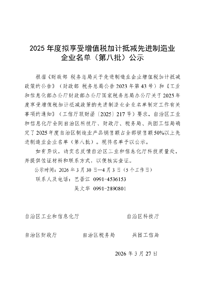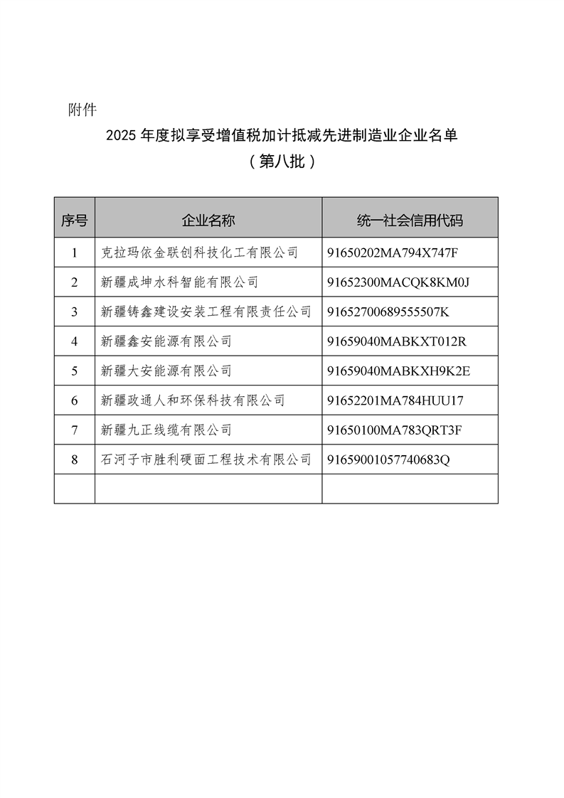 2025年度拟享受增值税加计抵减先进制造业企业名单(第八批)公示